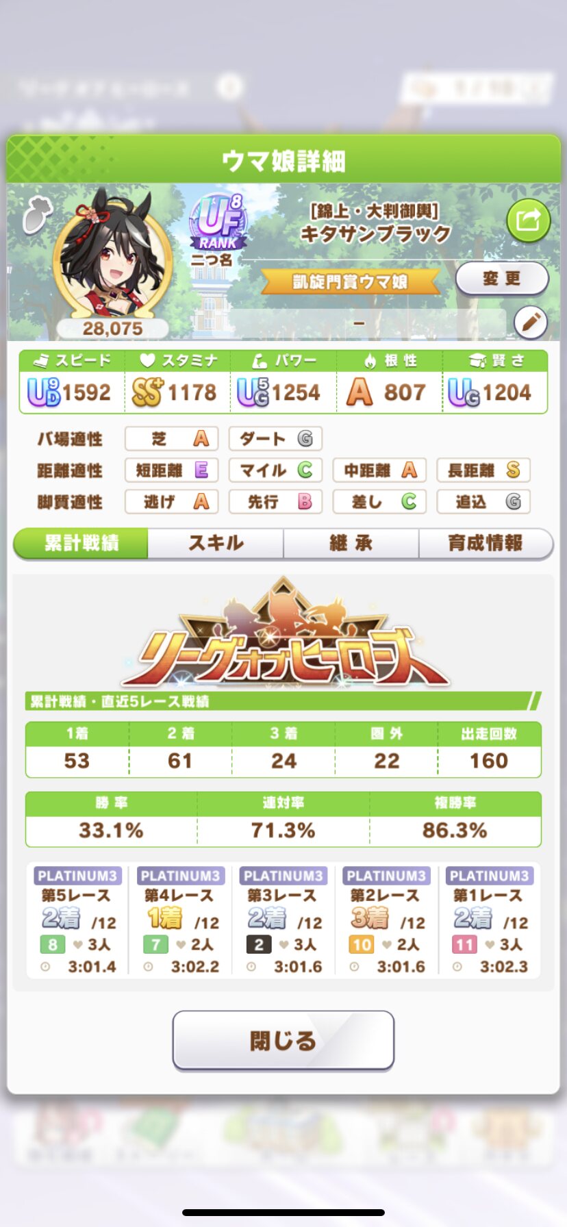 今やってきて通常フクキタルに負けて今回のLOHで一番ビックリしたわ