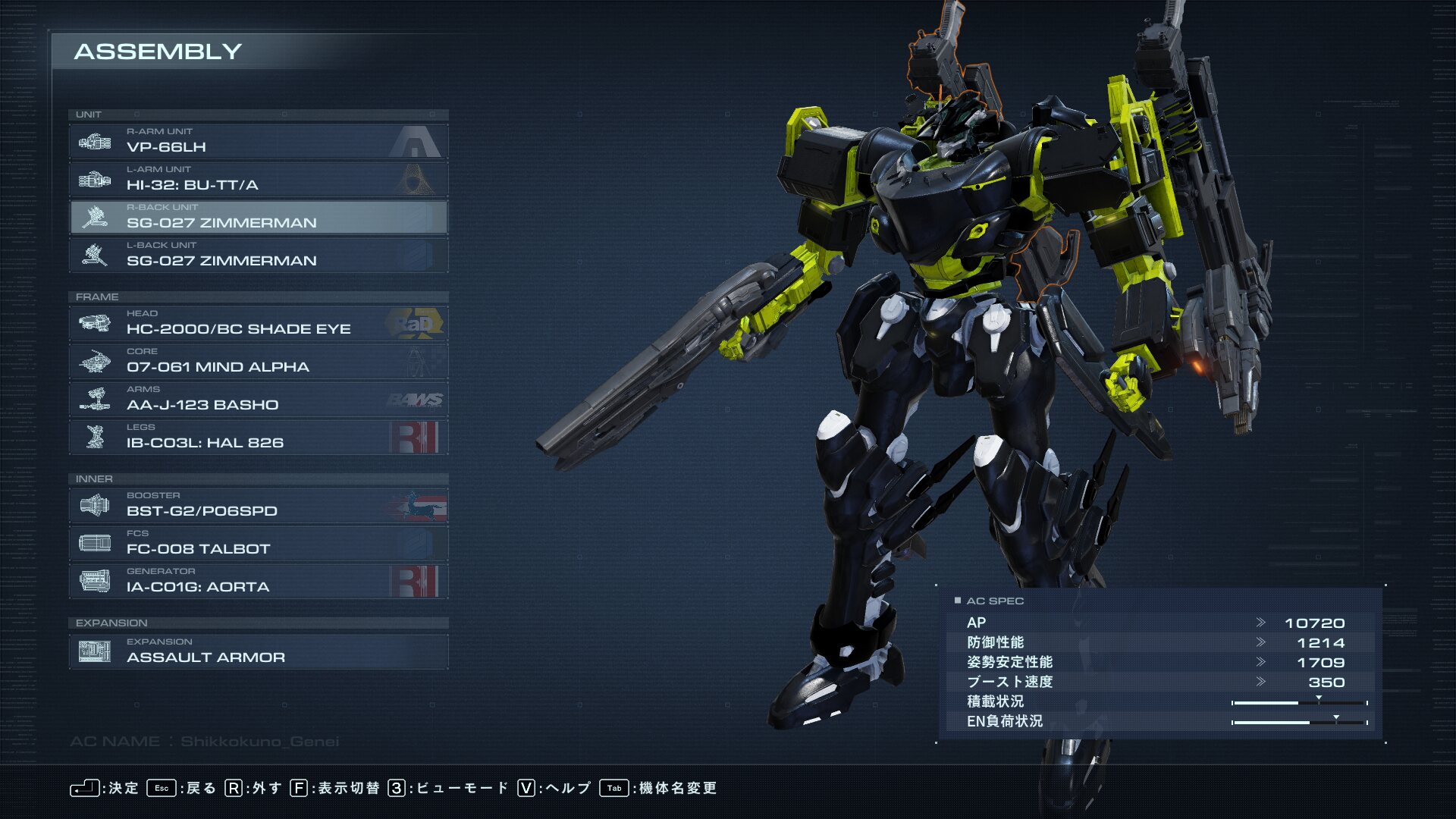 まず逆脚でショットガン四丁アセンを組んで、そのあとLRのリム・ファイアーをリスペクとした黒と黄色のカラーにしたんだよね