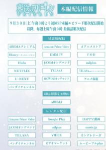 アニメ「葬送のフリーレン」配信は30日0時から。初回放送は29日夜9月29日21時からの金曜ロードショーで放送がスタートするTVアニメ「葬送のフリーレン」について、各動画配信サービスでの配信情報が発表された。金曜ロードショーでの初回2時間スペシャルは、放送終了から1時間後の9月30日0時より、Amazon Prime VideoやNetflix、U-NEXTなどで配信開始となり、以降の最新話は毎週土曜午前0時より順次配信となる。av.watch.impress.co.jp>9月29日に金曜ロードショーで放送の初回2時間スペシャルで展開するのは、原作コミックス第1巻から第2巻序盤にかけてのエピソード