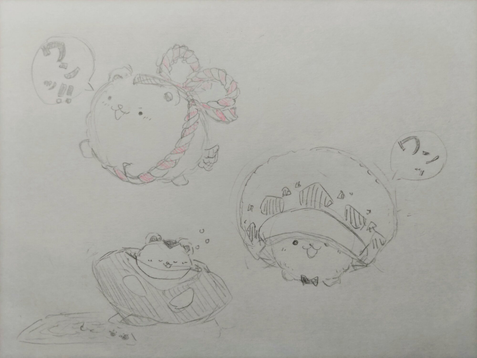 まん丸ボディに紅白の注連縄でオシャレしてるの可愛いな ちょっとヤマトっぽい感じなのかな