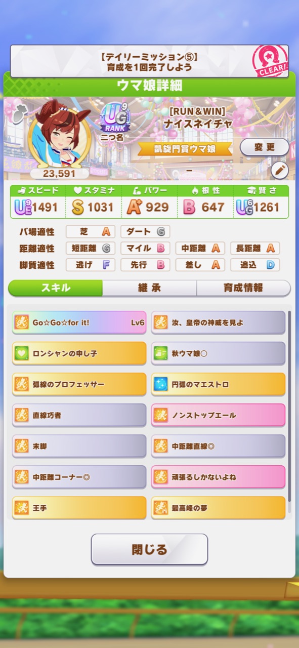 個人的には中距離ならママSRスピ抜いてウララSR根性にするかな