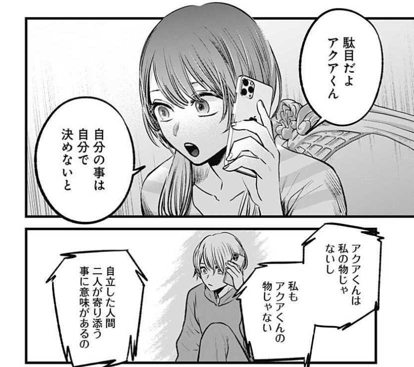 アクア君のいいところ?かっこよくていつでも人助けをして、まさにヒーローを具現化したかのような存在なのに、弱ったときはちゃんとわた、、彼女に聞いたりして人間臭いような部分もグッとくる。そして、何よりかわいい!アクア君がわ、、あかねをママと勘違いするような演技をしたときは顔を赤くしてマジデヤメとか言ってたんだよね。子供みたいで自分のやりたいことをしっかり曲げずにしてる。