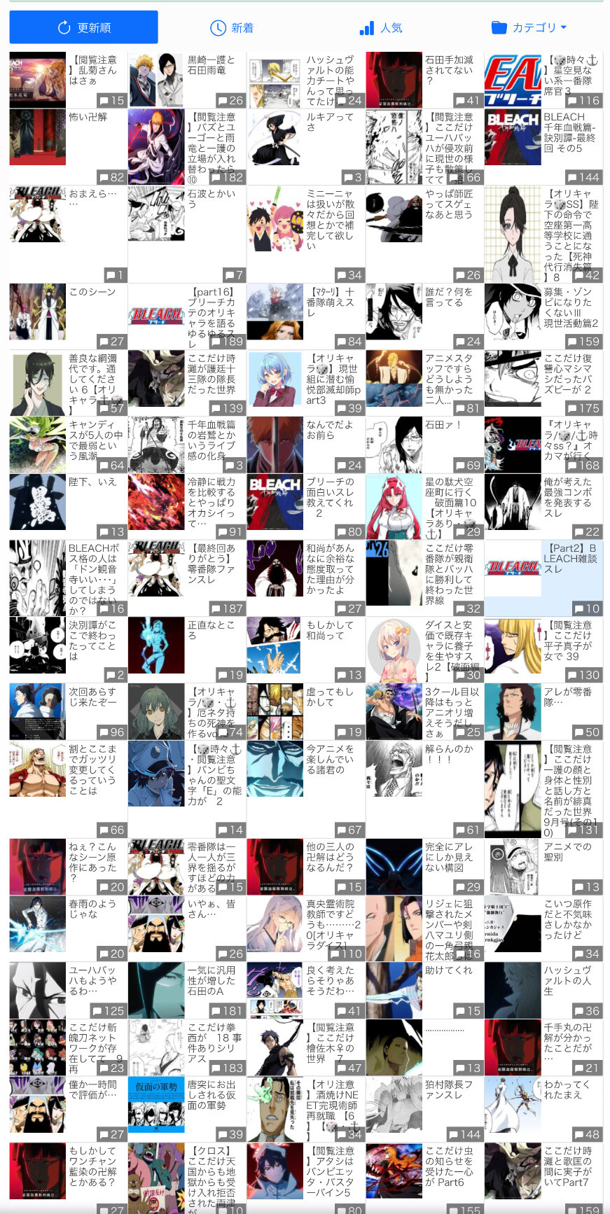 BLEACH単体って考えるとその賑わってる一部のカテとやらに入るんじゃねえかな、BLEACHカテは