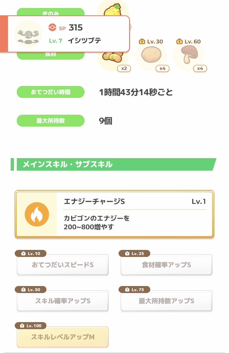 キノコの取得ポケモン見たらきのみのオコリザルやスキルのマルノームの方が食材確率高いっぽいのでゲンガーは食材はおまけできのみかお手伝いスピード特化した方が良いかもと思った