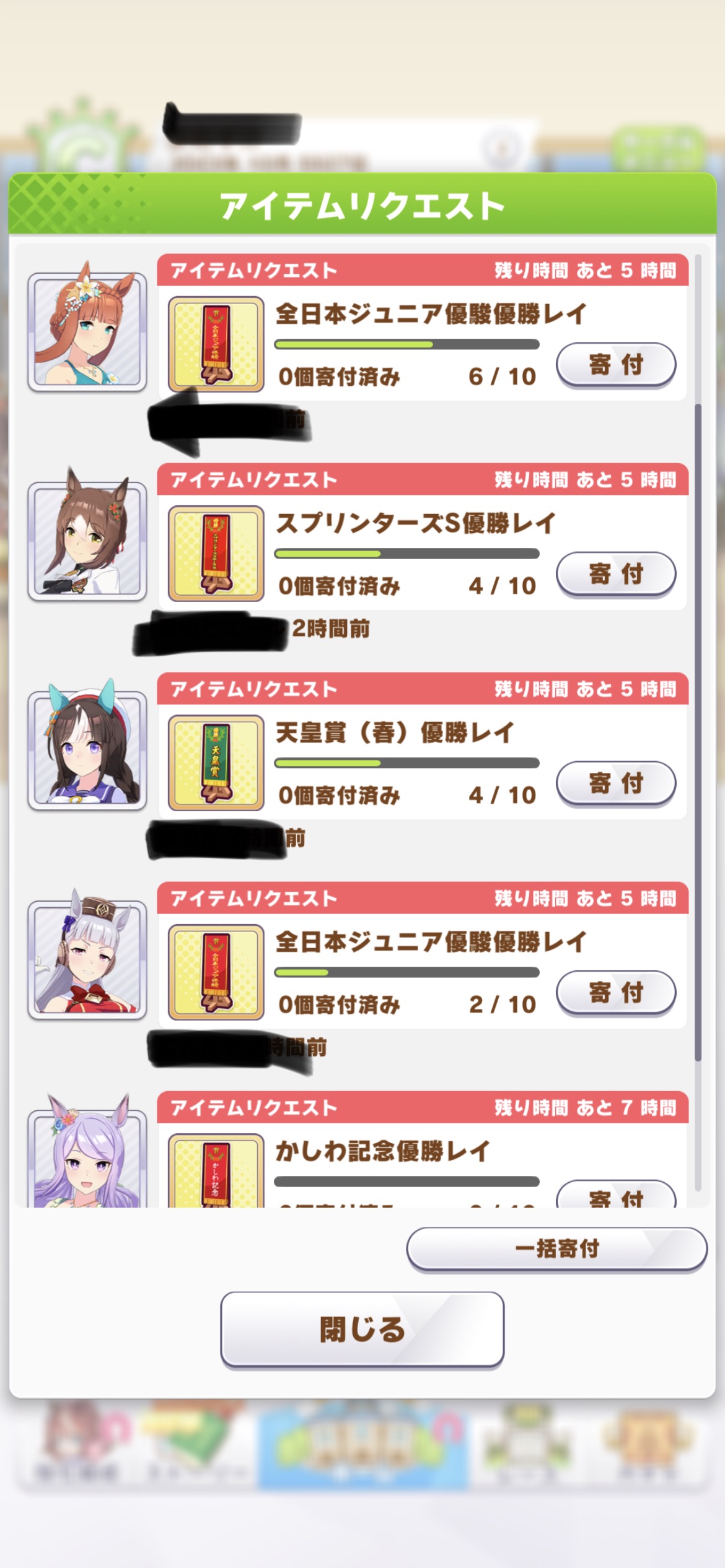 ウチも高松宮記念とか全日本ジュニア優駿とか足りなそうなレイ募集してる人いるわ