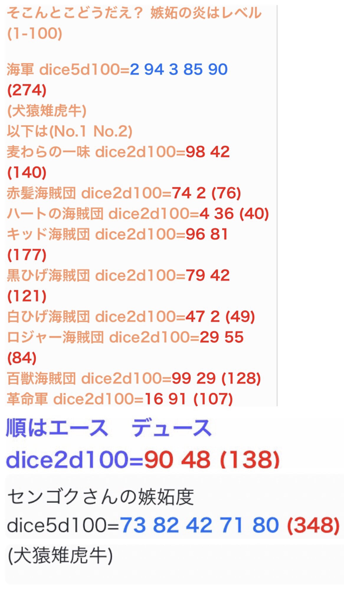 白ひげ海賊団 dice2d100=*