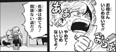 荼毘が燈矢と名乗っても「そんなやつ知らん」とプロミネスバーンして、全国放送の内容にも「あれは頭のおかしい敵の妄言だ」とマスコミに説明するエンデヴァー