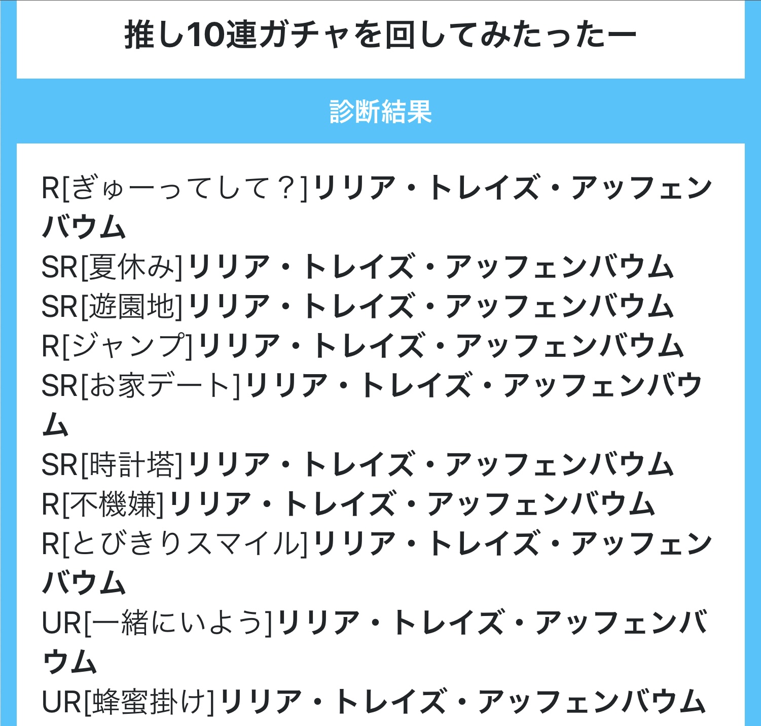 全然関係ない話するんだけどこの診断メーカー楽しい ここの子の10連ガチャ引けるよ