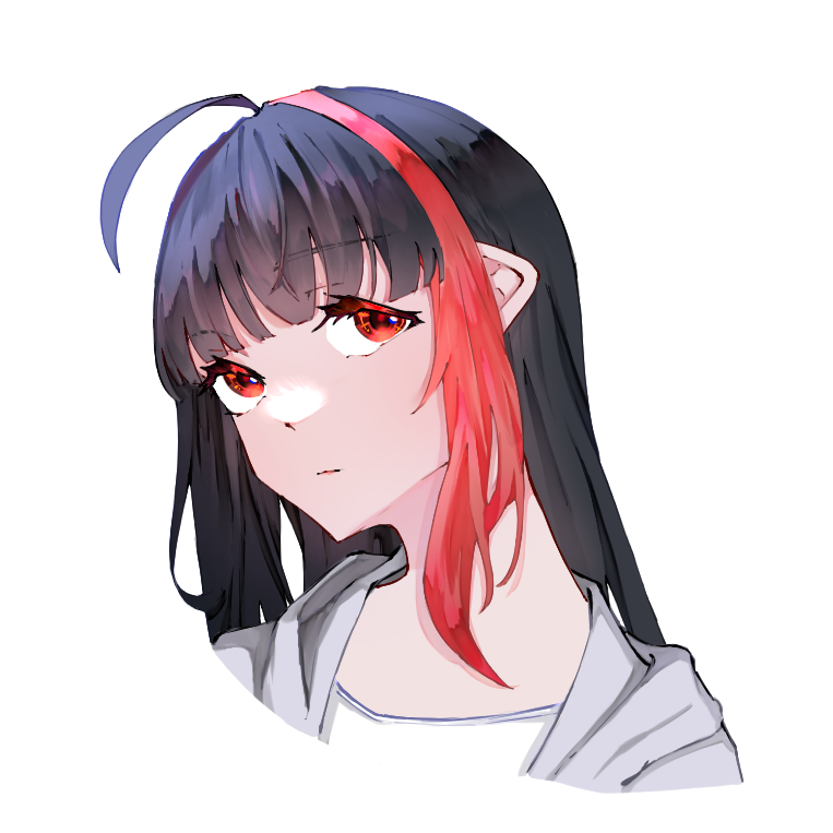 見た目:黒髪に赤メッシュ、アホ毛ロング、紅目、ロングスカートにダジャレTシャツとパーカー
