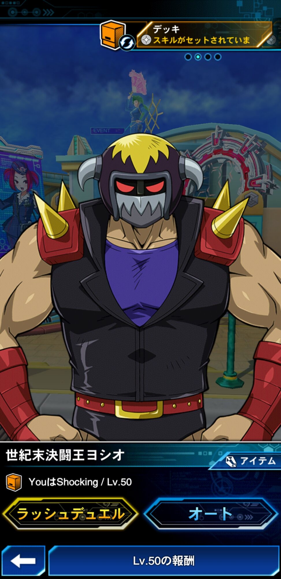 「次回ゲージ3倍」って出たらゲートで報酬2~3倍でデュエルするを繰り返せば効率よく世紀末決闘王ヨシオを出せるはず