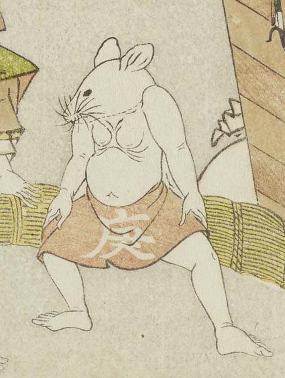 頭はネズミですが、体はムキムキとした人間の姿をしています。まわしを締めて、これから相撲を取ろうとするところ。行司は大黒様です。はたしてどんな大一番となるのでしょうか。 #キュレーターバトル #ヘンな生きもの ※現在展示していません — 太田記念美術館 Ota Memorial Museum of Art (ukiyoeota) 2021年12月27日