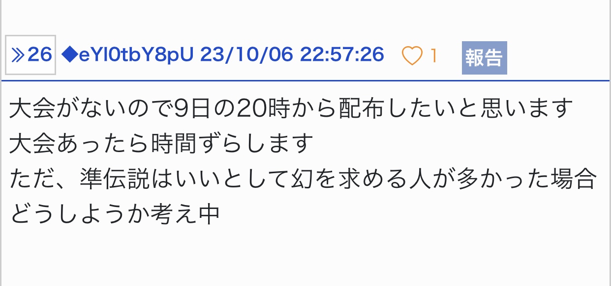 ◾︎第3回再利用杯 10/22【仲間大会】 第3回 再利用杯 告知スレ 【10/22(日)】|あにまん掲示板以下の日程にて仲間大会を開催します2023年10月22日(日)20:00 〜 22:00シングルバトルノーマルルール※最大6匹選出できてしまいますが、各自3匹としてください(選出時間切れにご注意くださ…bbs.animanch.com◾︎えっちな技限定大会第2夜(ダブルバトル) 10/28