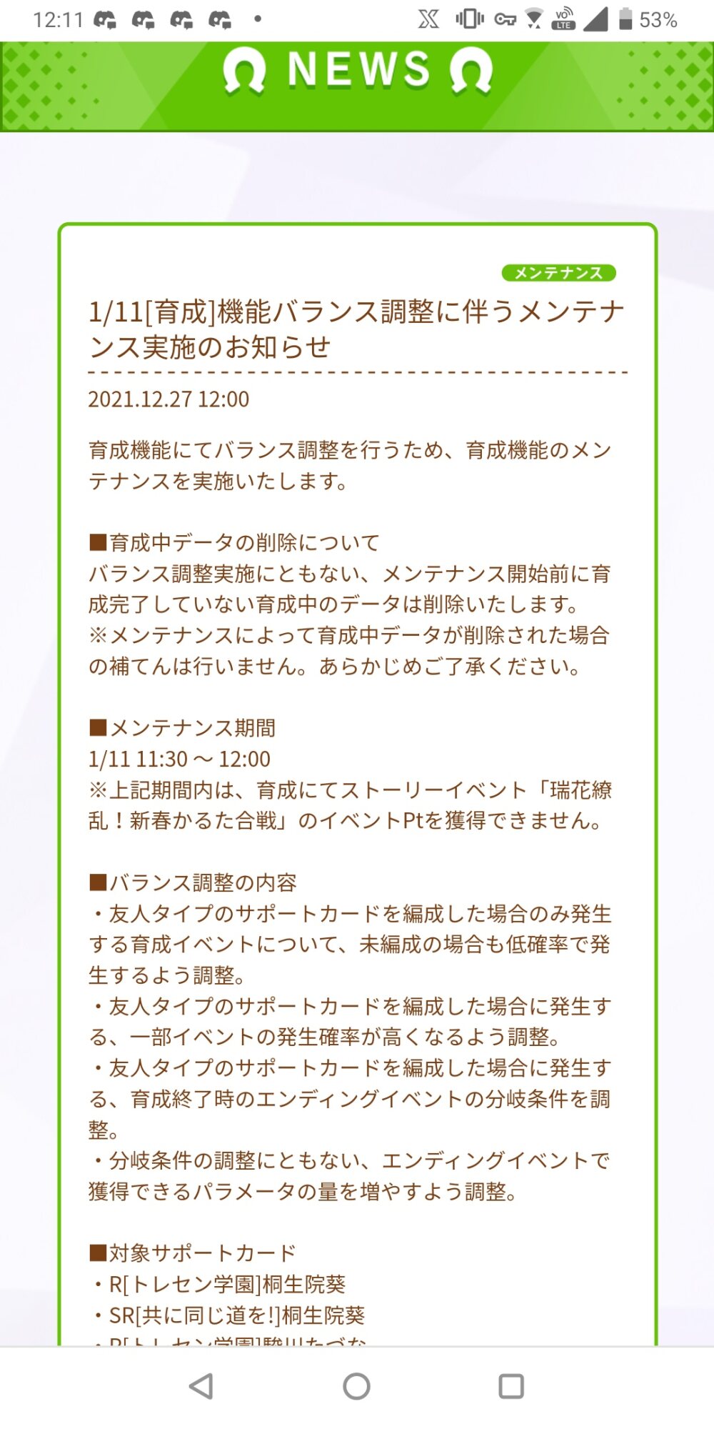たづなはさぁ…6月前半にサポイベ潰してパントマイムすんのやめてくんない?