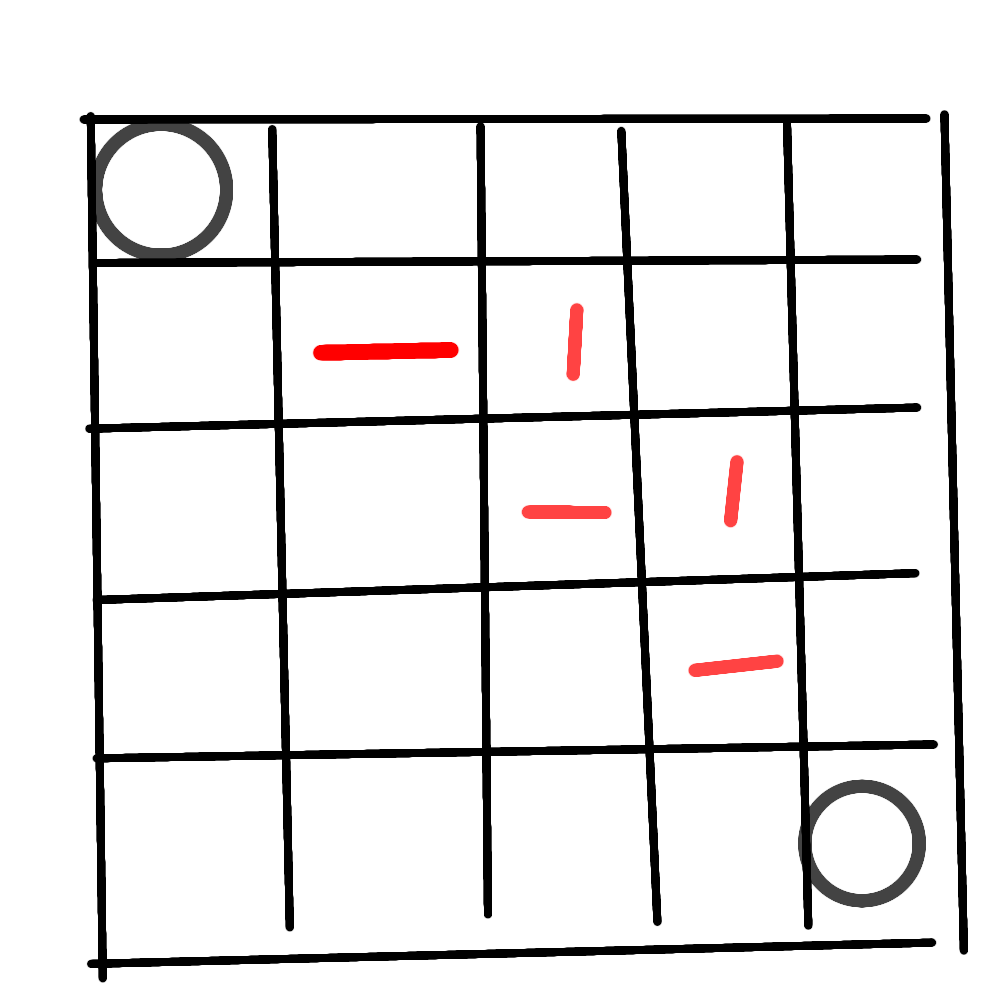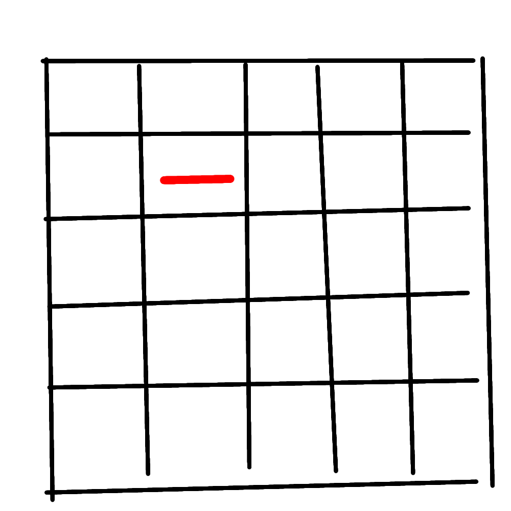 ・5×5の盤面の左上斜め下のマスに横線を書いた状態でスタート