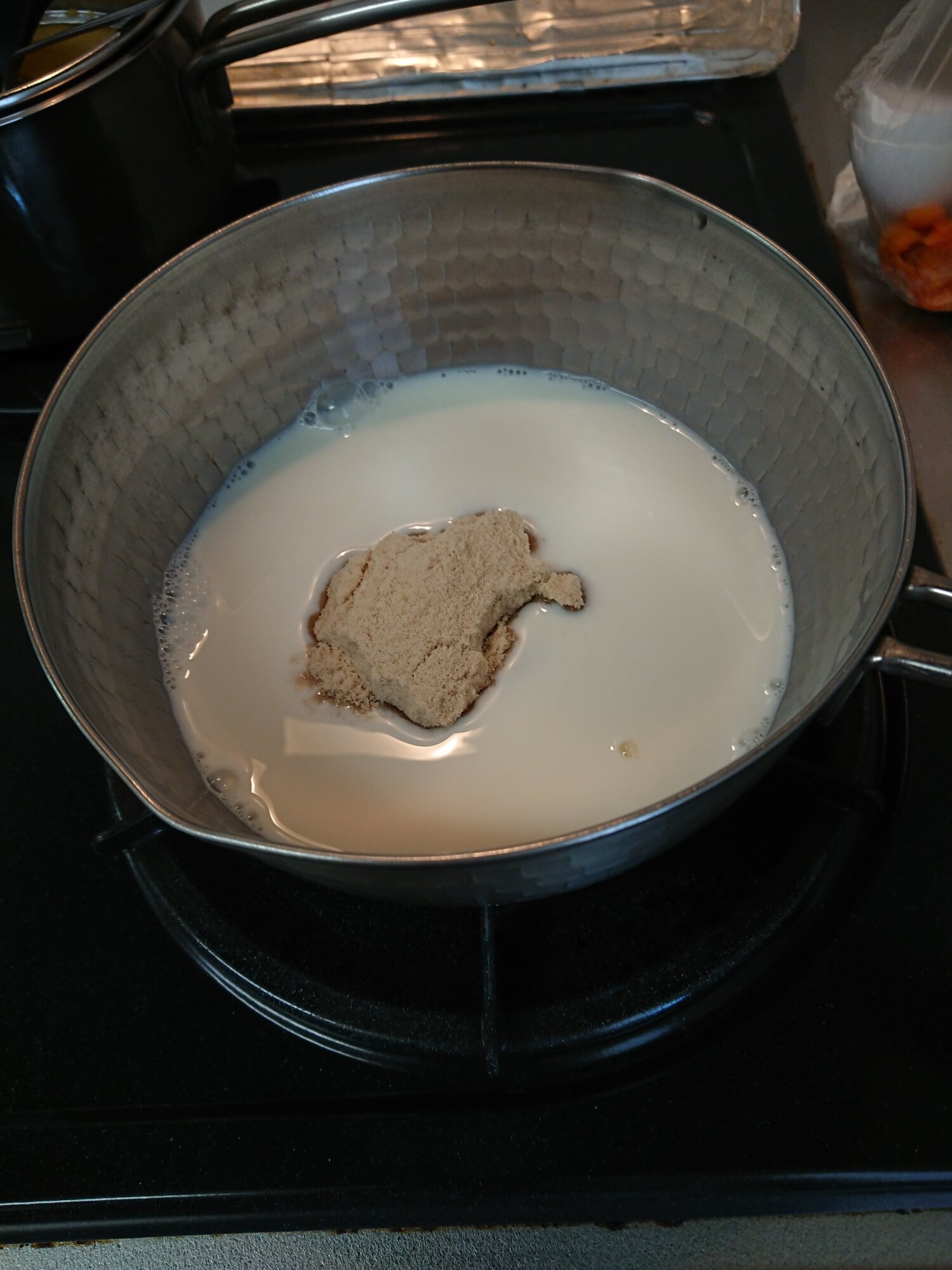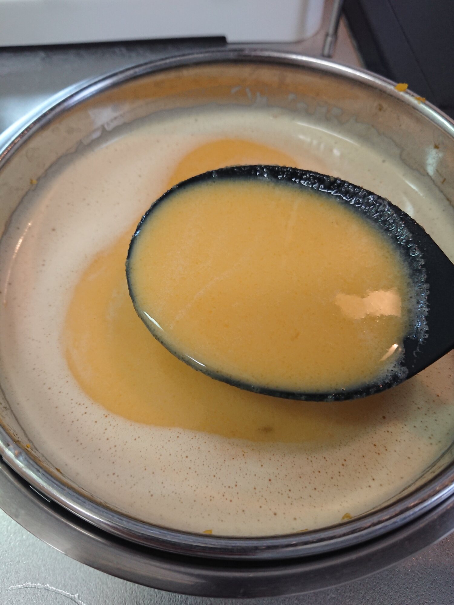 皮が破けたりひびが入ってプリン液が漏れても大丈夫なように下に皿を敷くなど様子を見ておくこと