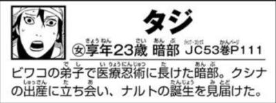 タジが出るナンバー500見返したけど暗部のタジとしか言われてないし体型が分かるような服装じゃないな