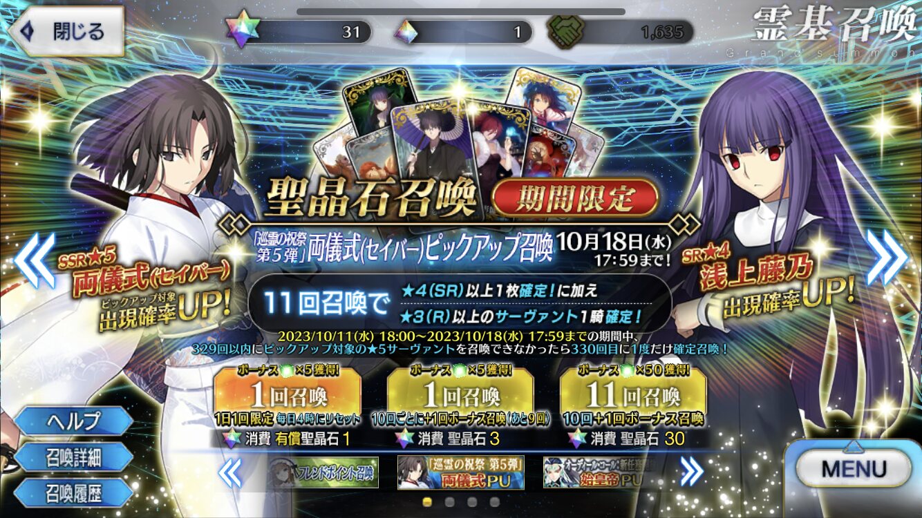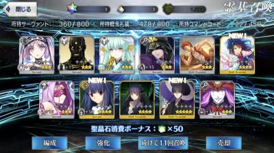 キャンペーンで石18、リツイートで30、ふじのんと貰った鯖育てて6、あとは次イベの生放送とかで合計20連くらいはなんとか…?
