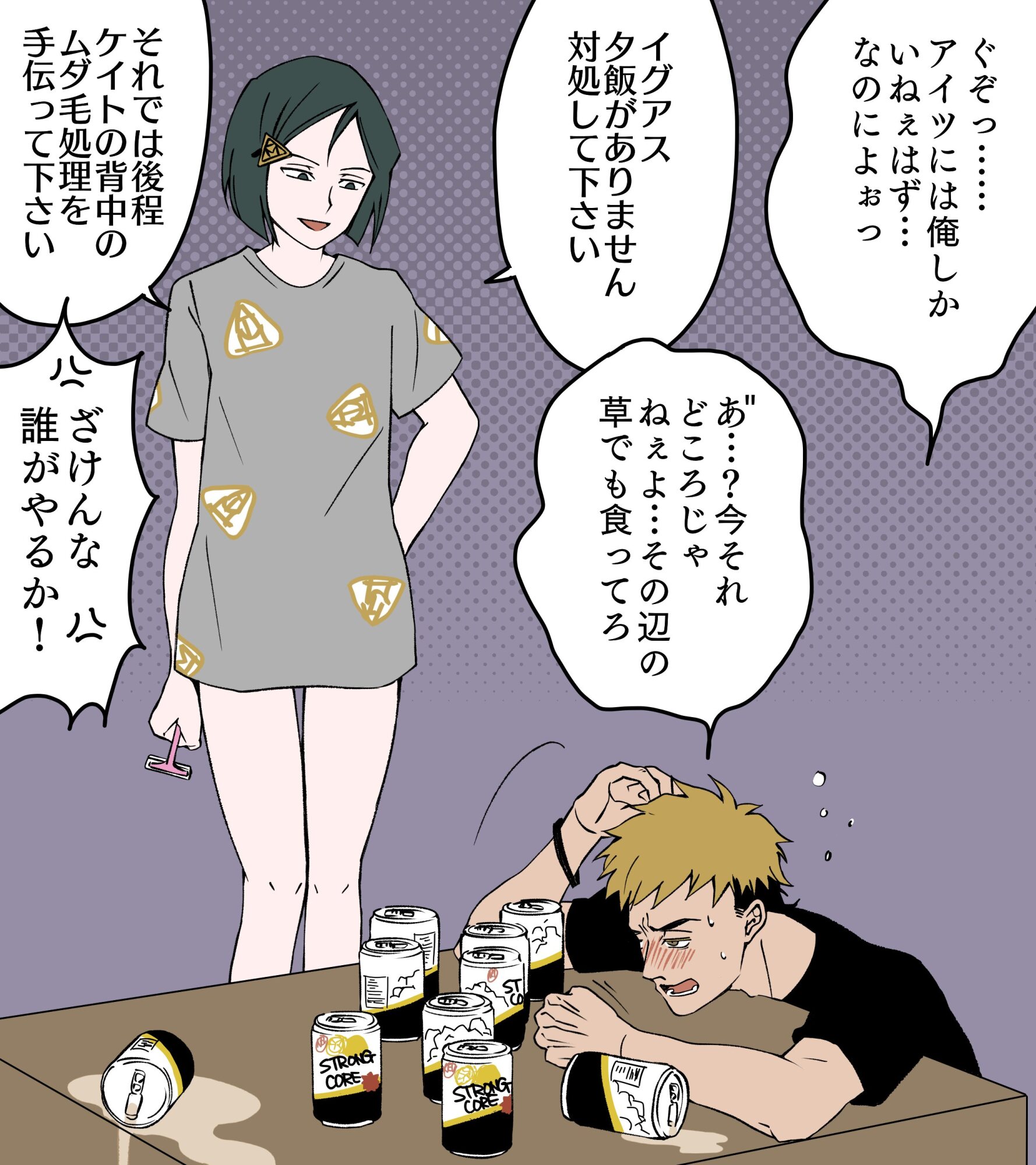「……(ほとんど裸じゃねぇか なんでコイツは俺にこの状態を見せて平気なんだ)」ジョリジョリ