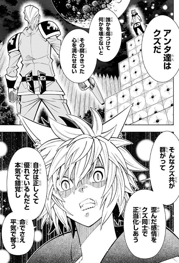 能力バトルものの宿命かもしれないけど説明する要素が多すぎて文字数が多くなり、それを収めるために一つ一つのコマが大きくなって展開が遅くなる負の連鎖なの