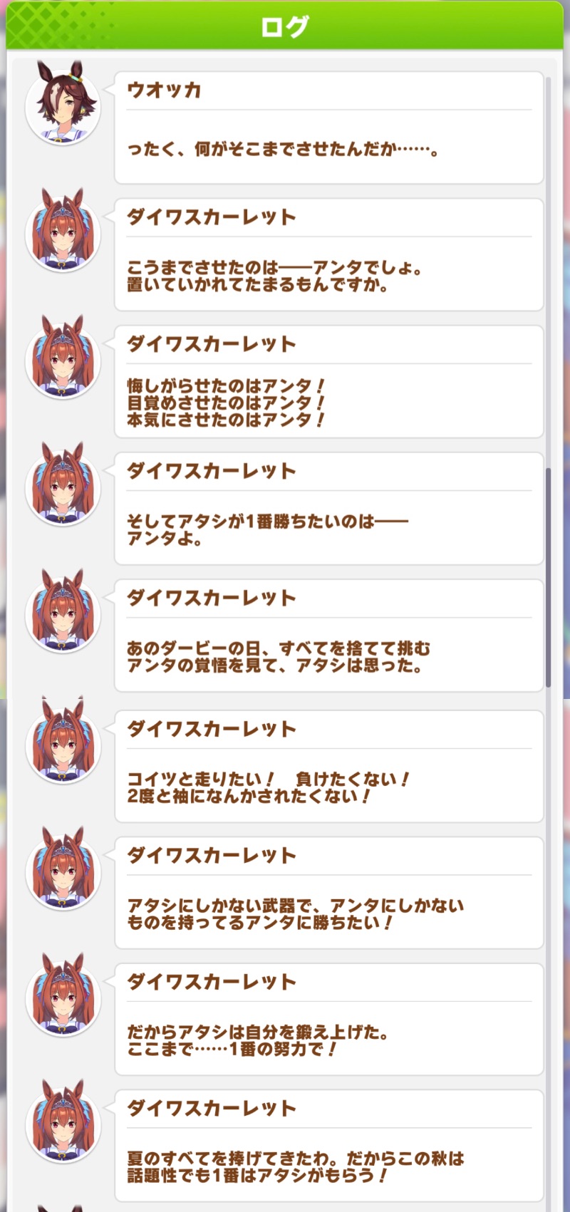 トレーナーが「ダスカが俺の1番だぞ」って宣言してダスカが「アンタがいつもそう言ってくれるからアタシ頑張れる!」ってお出かけイベ見た時は恋愛ゲームかな?って思ったね