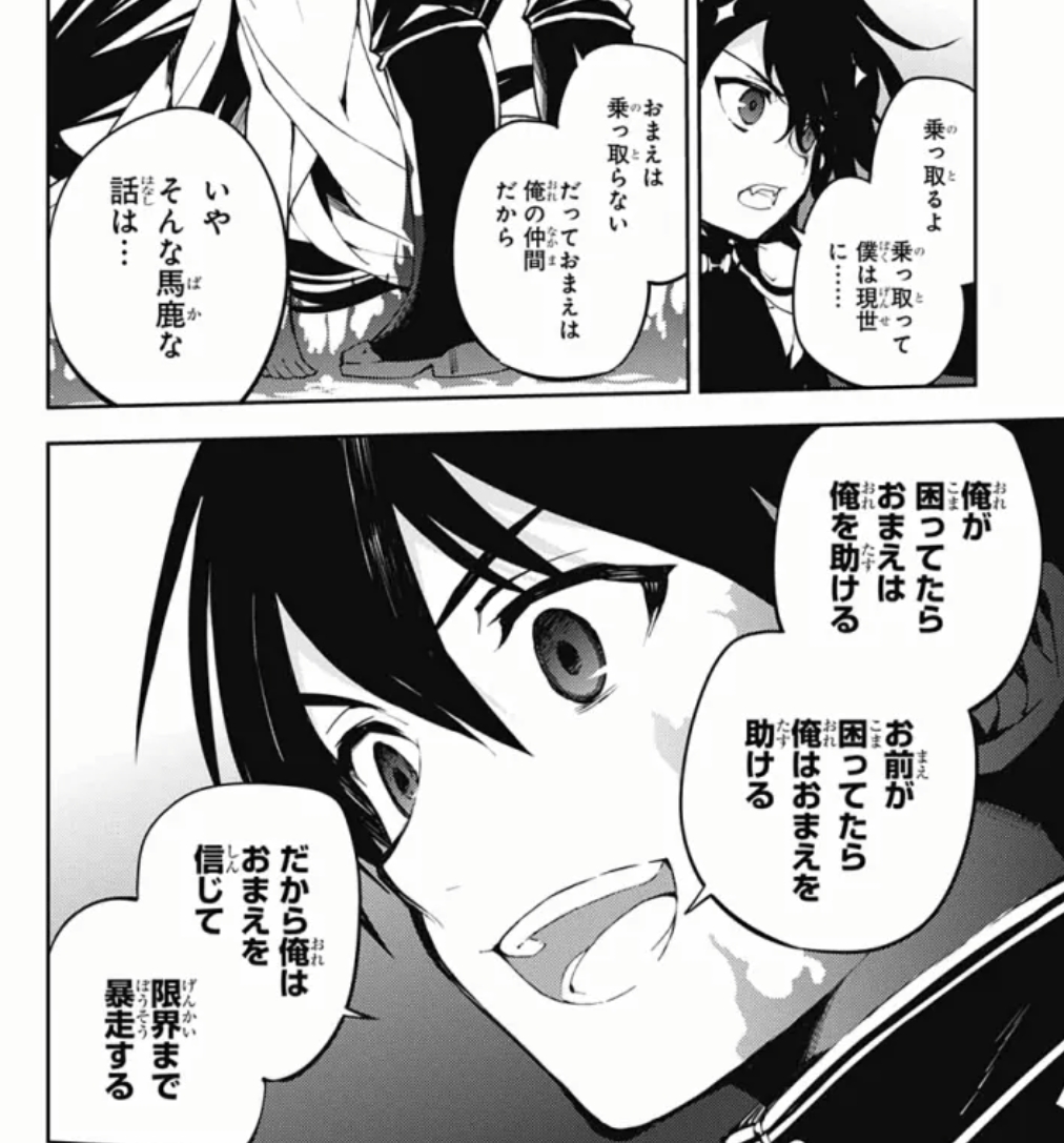 シノアが大好きな優と真祖が愛しているミカエラは同一人物だからこの二人が手を組む可能性あると思ってるのは俺なんだよね