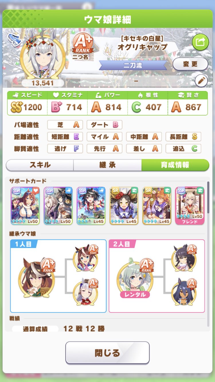 自前でキタサン完凸持ってればあとは配布とフレンドでどうにかなっちゃうからな