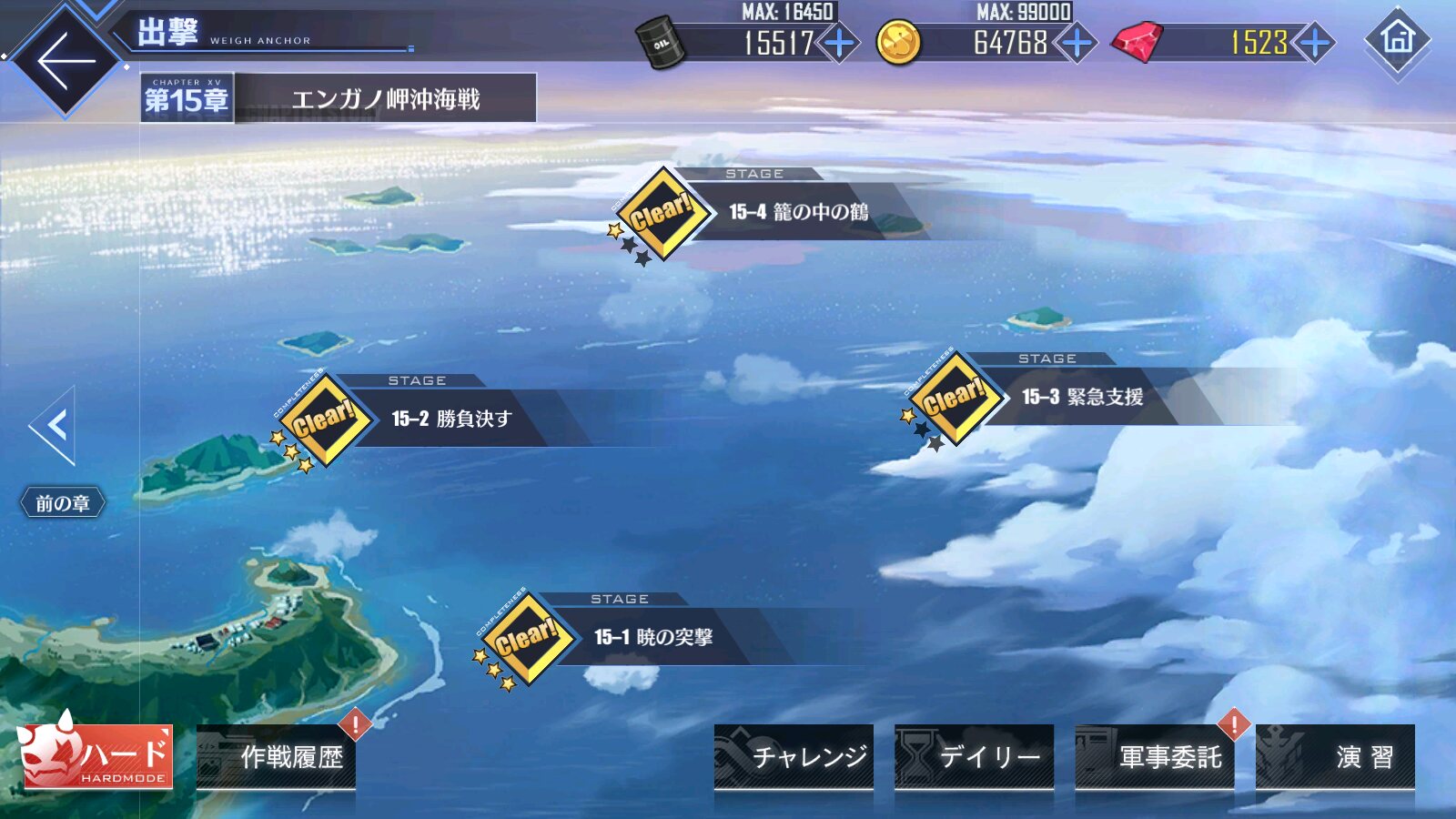 こう見えて私はうっかりさんでね、来週イベントがある事を失念して十五章攻略の為の装備やらを整えて15-1をクリアしたよ、その結果危うく燃料と資金が荼毘に付しかけた
