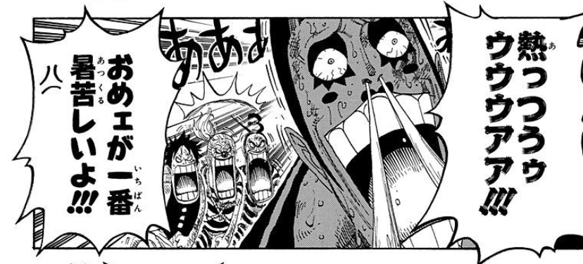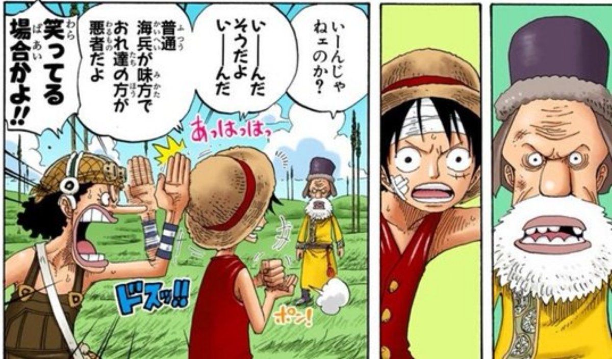ルフィのツッコミが「犬は!?」でも「犬は?」でもなく「犬は」だからこそ面白さが倍増されてるとか、リッチーから降りたりまた上ったりしてるモージは描かないで読者に想像させる絶妙なセンスとテンポとかを