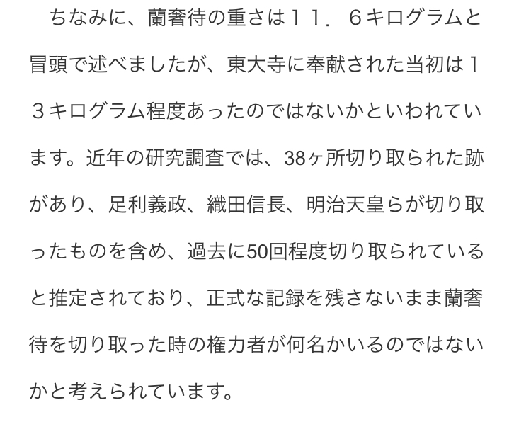 蘭奢待って削った痕跡が誰のものか記録されてるやつじゃ……