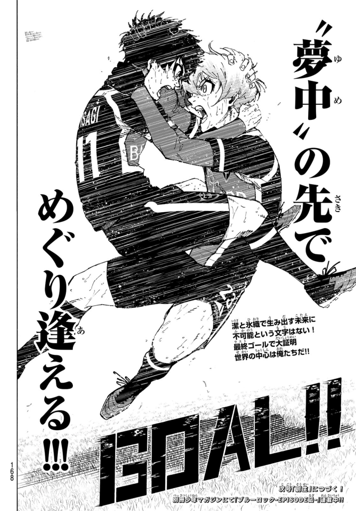 ……もしかしなくても潔が潔単独ゴール前個人技発掘して、凪が深層のエゴ自覚・再現性獲得して、凛ちゃんが常時ベロ出しエゴサッカーして、士道が常に爆発するようになったらブルーロック、やべぇのでは?