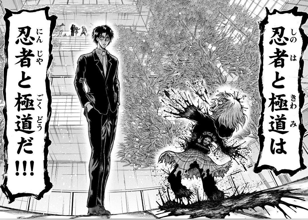 もはや和解は不可能だけど忍者(しのは)も極道(きわみ)も過去に何か共通の部分がありそうだし黒幕もいそうだからそれの打破では共闘して、最後はしのはの「ぶっ殺した」で締めてほしいな