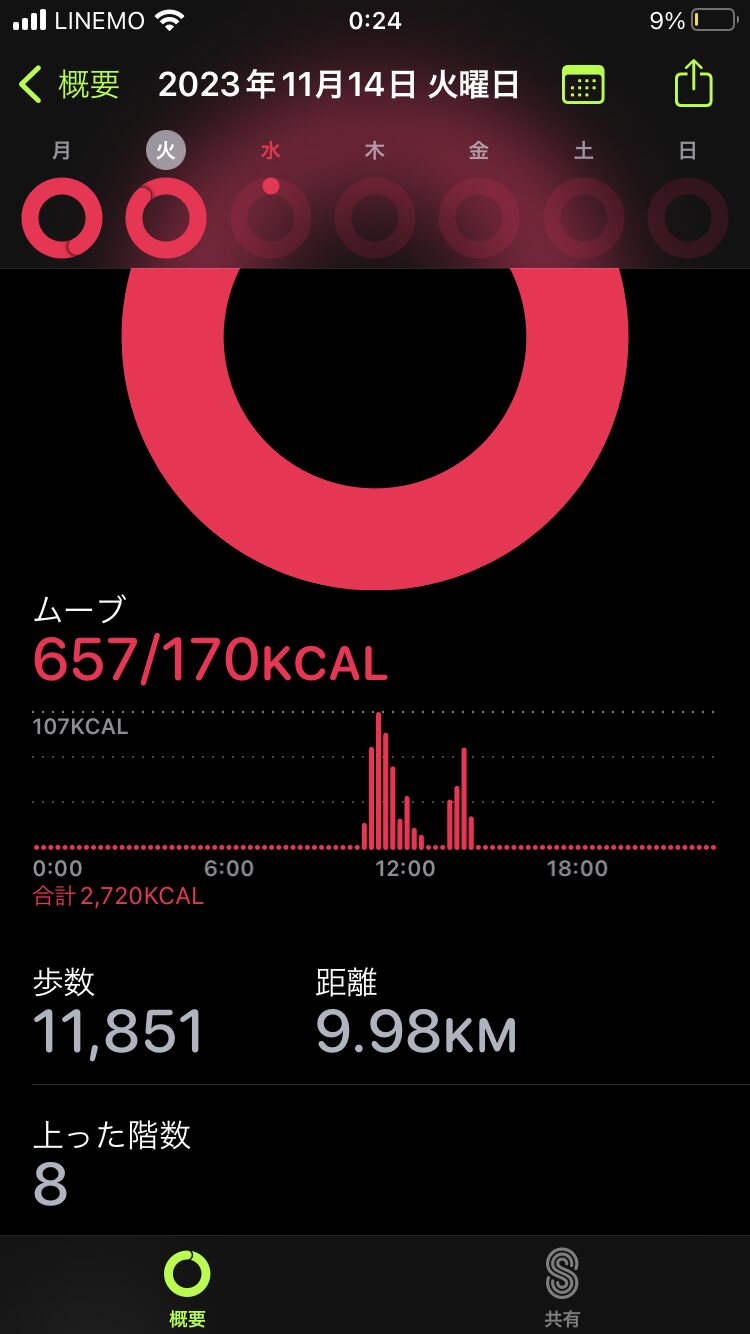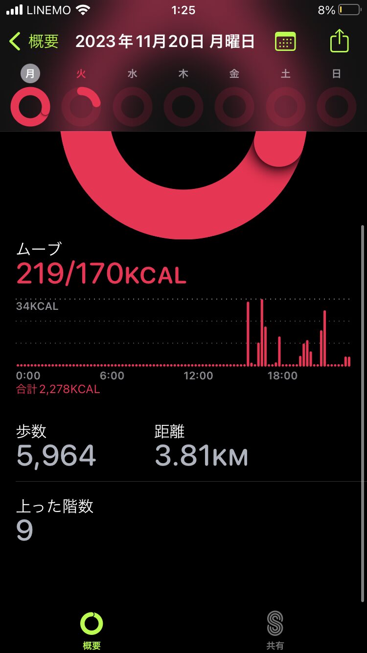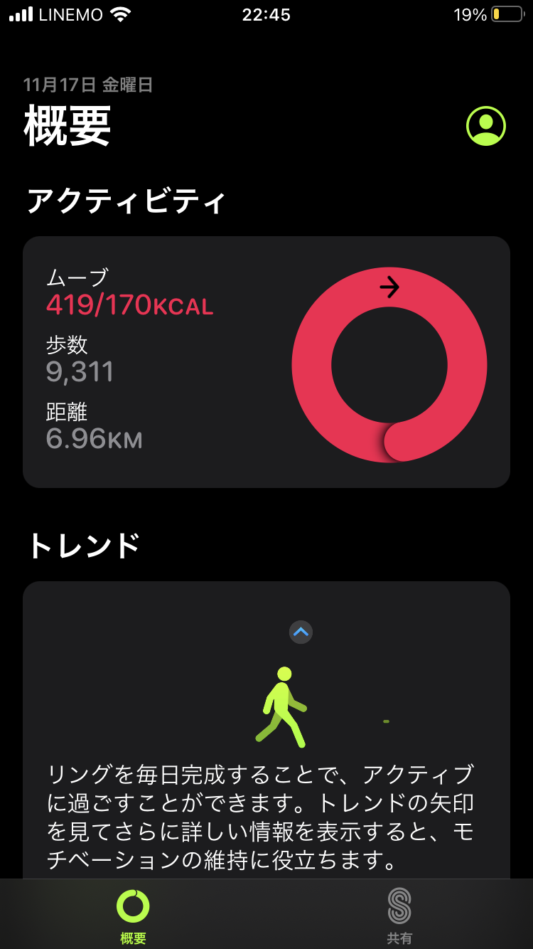 毎日5キロ前後歩いてるってことか。頑張れ。