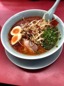 チャルメラの宮崎辛麺に卵が至高
