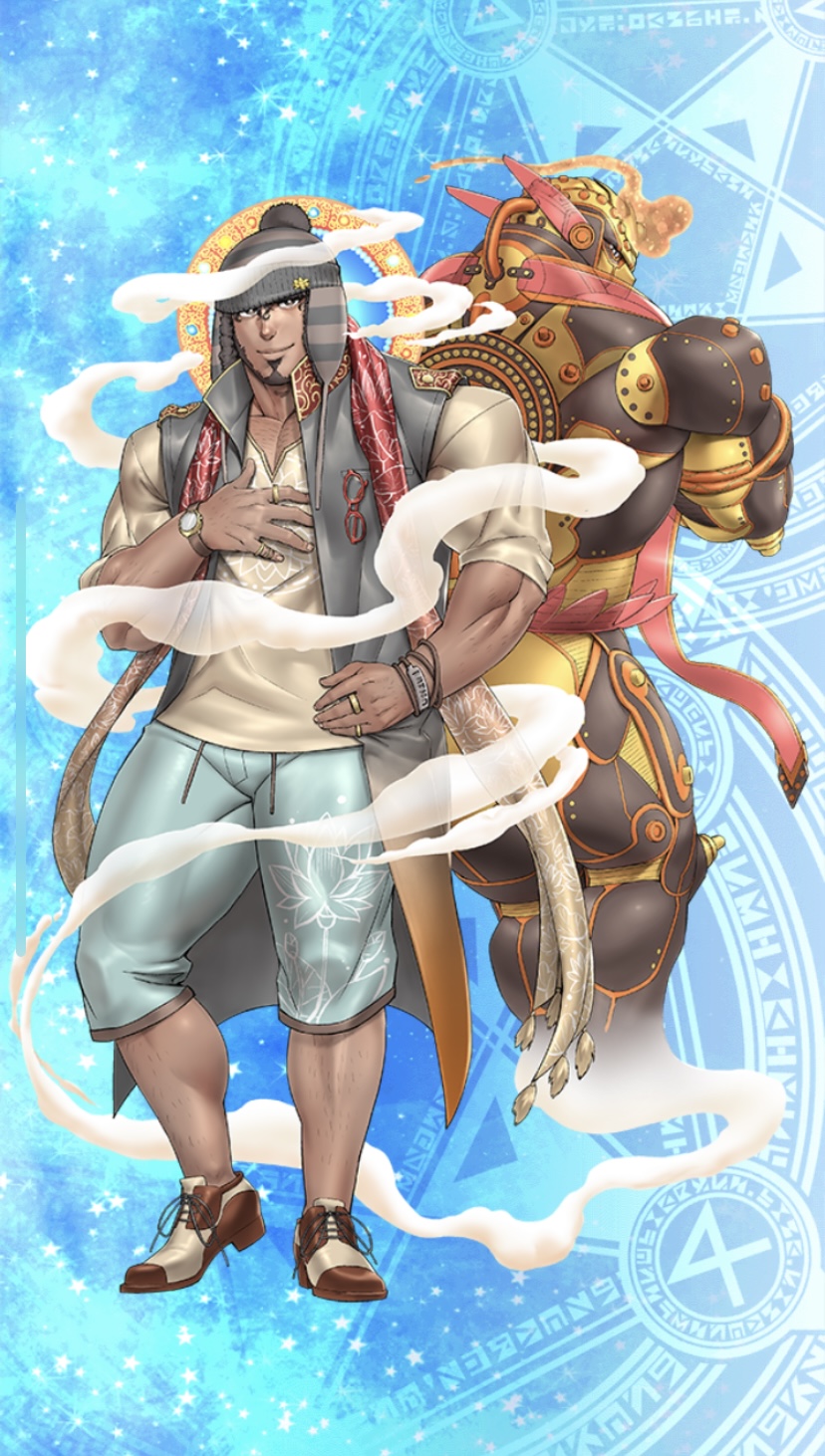 ぱっと見ジン(ランプの魔人)かと思いました。もしくはテスカトリポカですがそれはすでに出ているし根拠が薄いので除外。