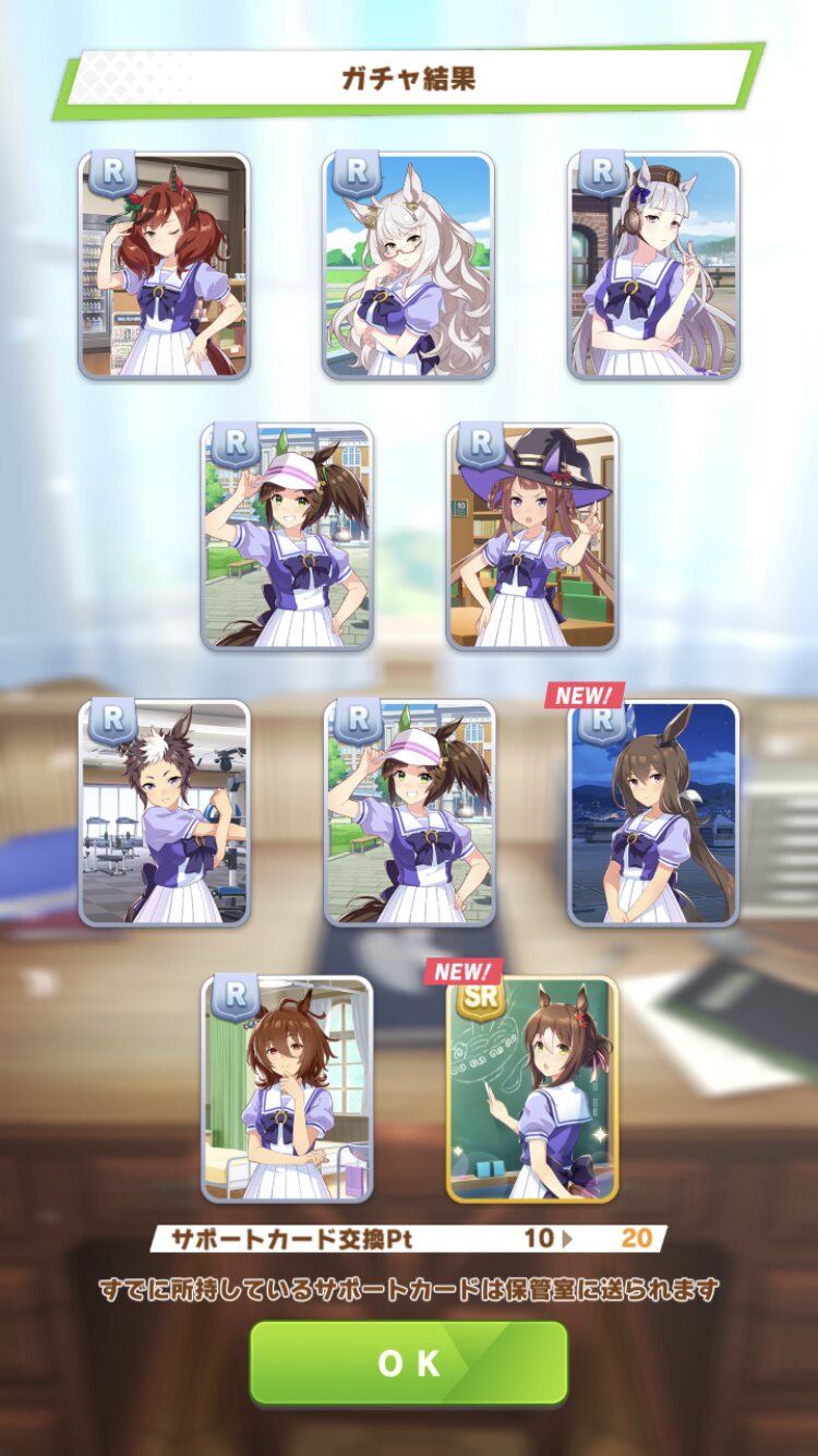 キャラガチャ敗北に続きサポカも今のところSSR無し