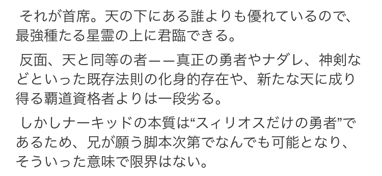 お兄様がこんな世界なんてぶっ壊してやるよとか言ったらナーキッドは手始めにありと二元論に存在するあらゆる星をかき混ぜて物理的にぶっ壊してそう。