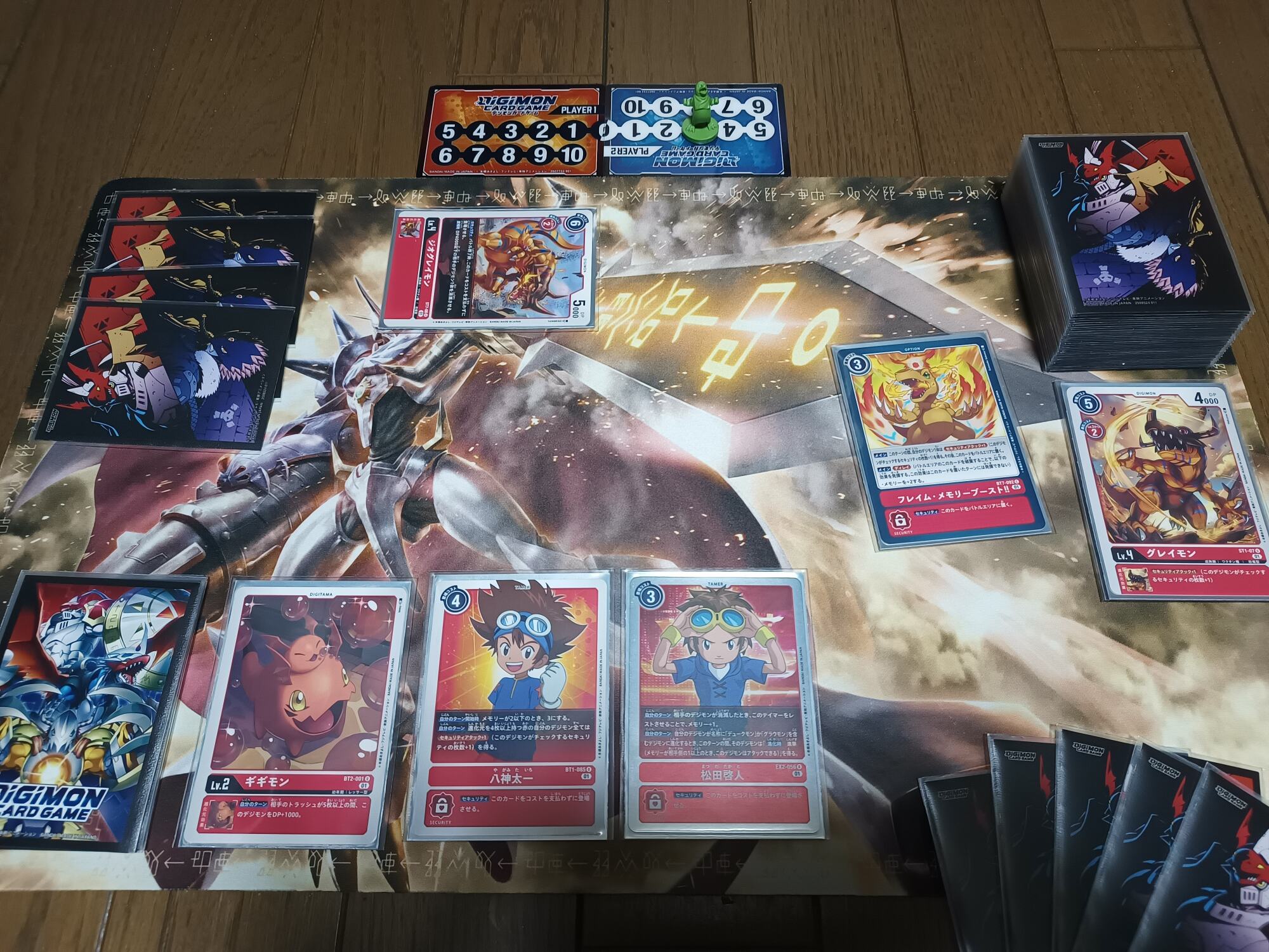 手札を回しながらタイタモンを着地させ、スカルグレイモンの道連れ等で殴り返しを抑制しながら殴っていきます