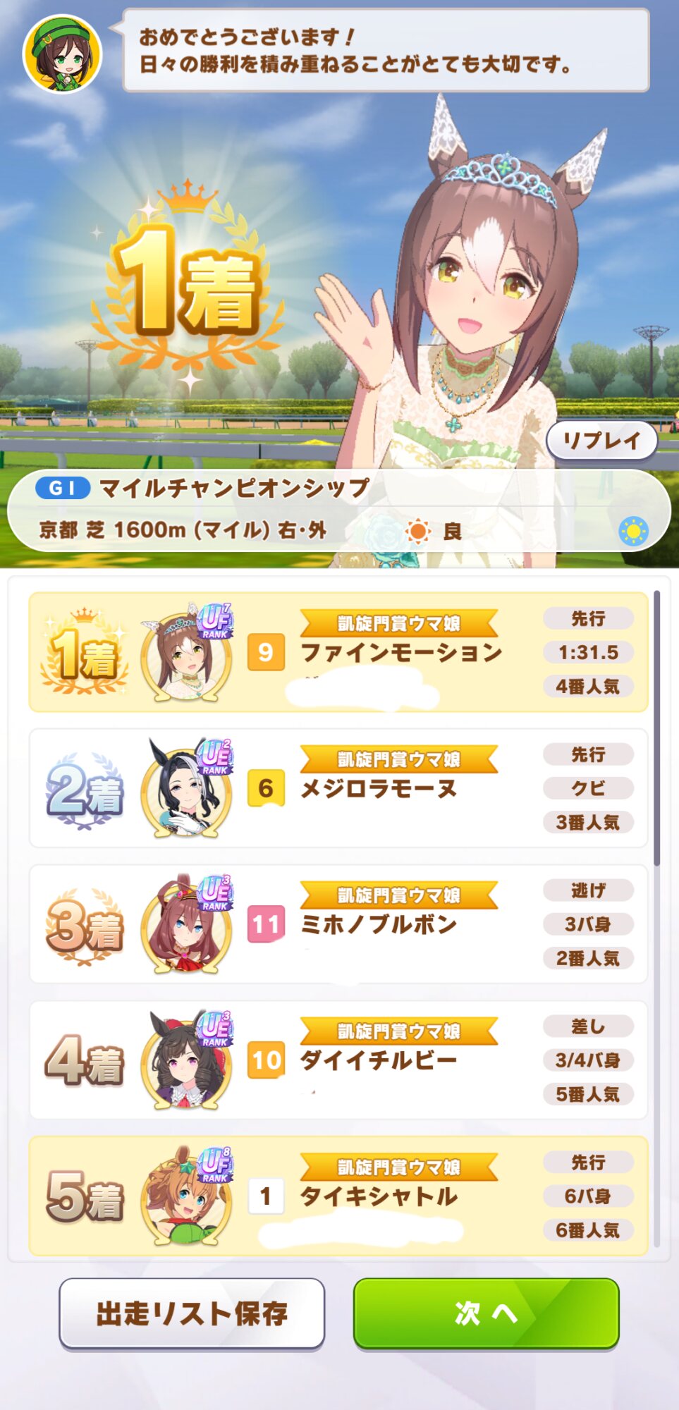 ボクは距離Sも緑スキルもなく、スピも1550しかありません