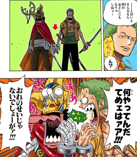 サンジと喧嘩してる時ちゃんと刀三本抜いてるとこ