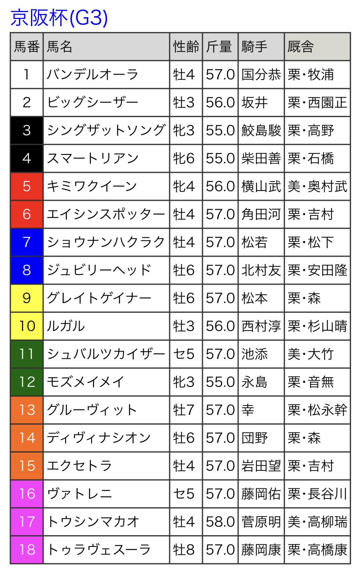- 161重賞競走枠順23/11/25(土) 06:08:07
