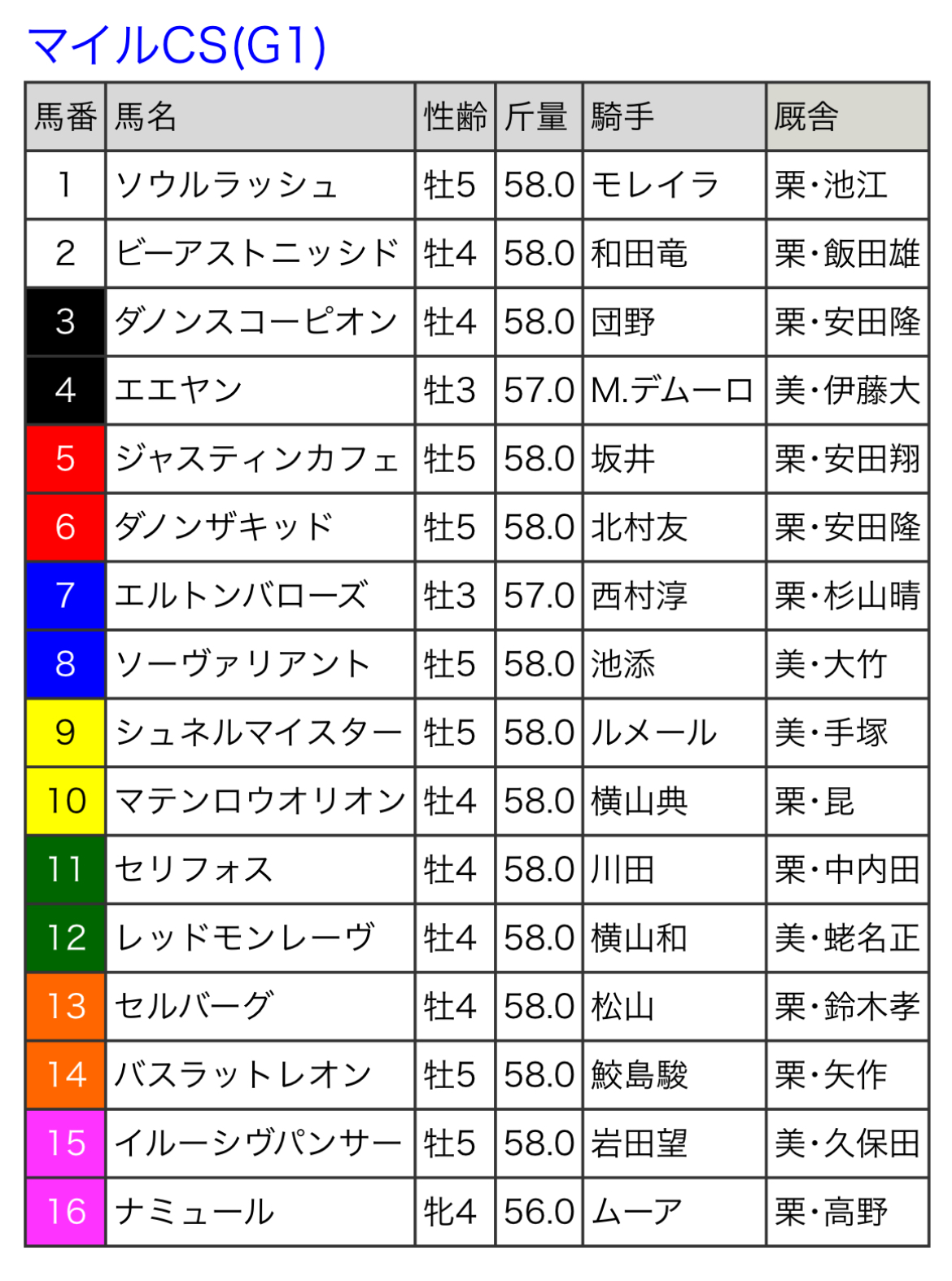 - 13重賞競走枠順23/11/11(土) 04:17:08