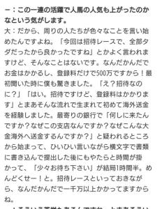 大和屋いわく、招待レースだったドバイでさえ登録料他諸経費で1千万円はかかったと言うし、長期遠征とかになると調教できる施設への間借りなど更に別途経費がかかってくるから、かなり負担が大きいだろうね