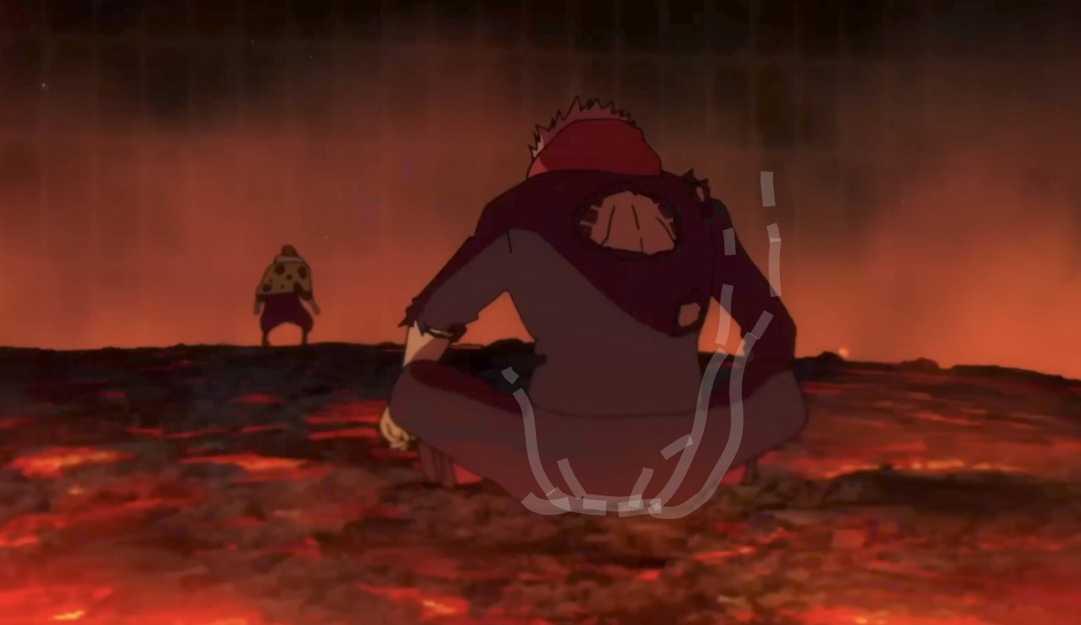 制服の背中と尻の部分に穴が開いてる宿儺さま…