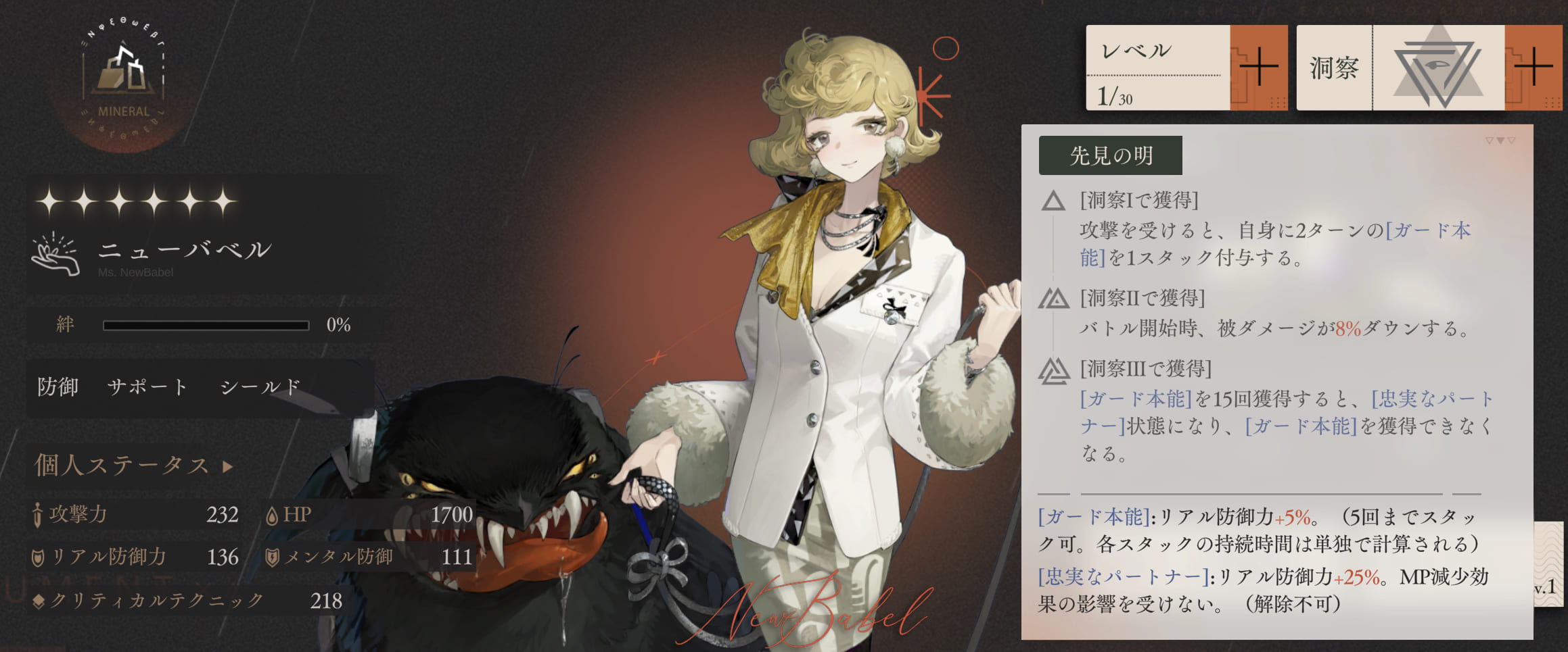人工夢遊のことを考えると6キャラは洞察3異常にしたほうがよさそうなんだよね