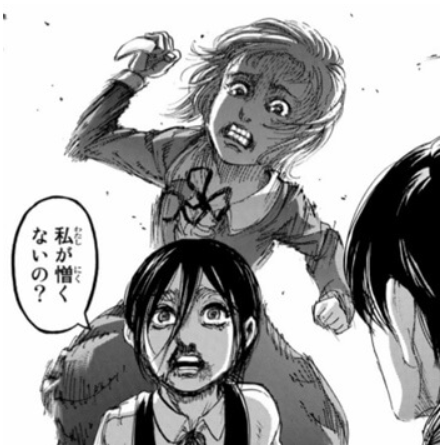 ガビはガビでサシャが憎むべき人殺しの悪魔だったのは事実だったんだよね、人生の悲哀を感じますね