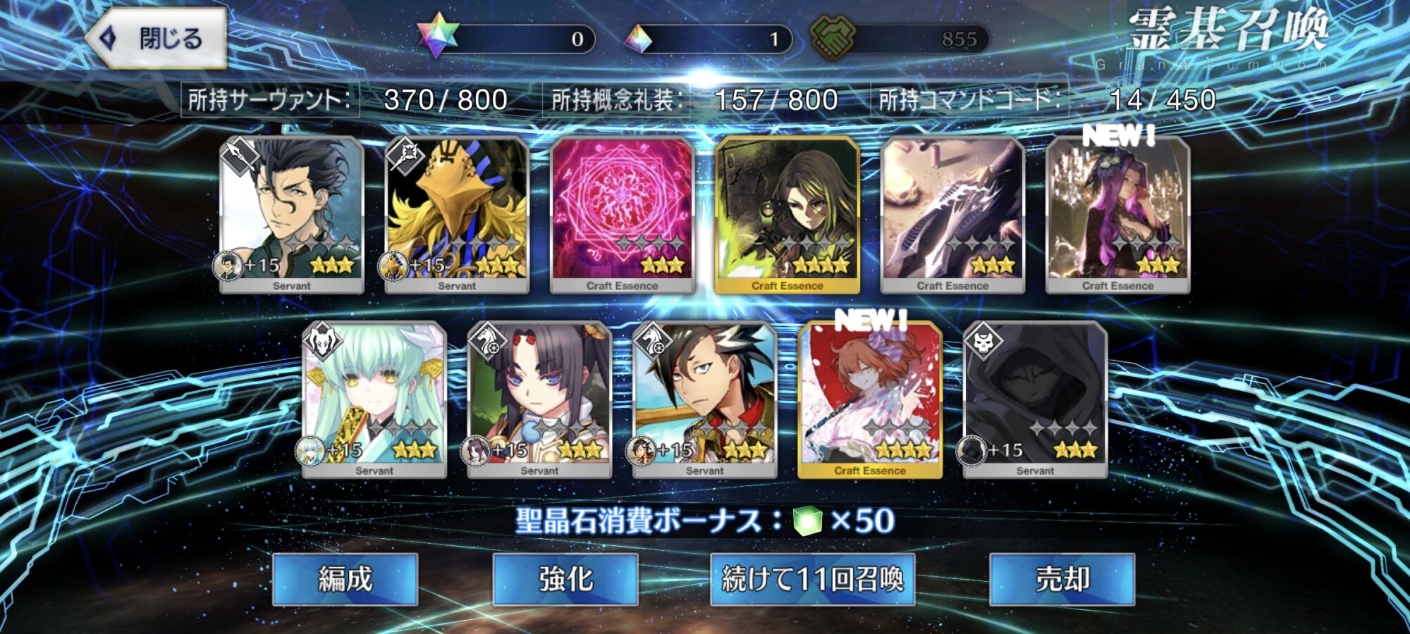 ジュナオ宝具3にできたしついでに聖杯と金フォウ入れてLv100にした!