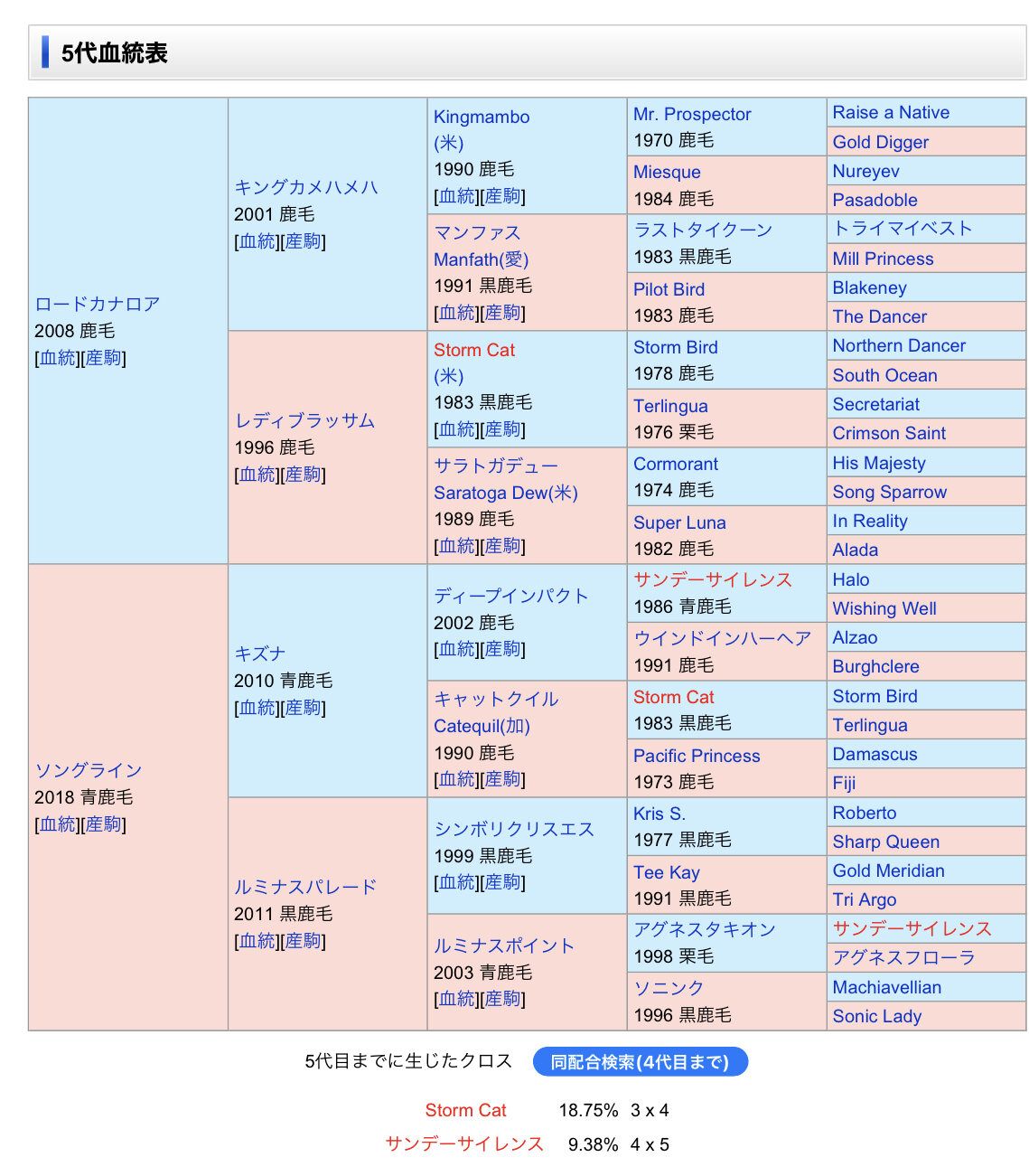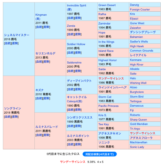 改めてシュネル以外で社台Sの種牡馬縛りするとシスキンとナダルとサトノクラウンとモーリス以外は近めのインブリードなやつばっかだった。モーリスでもサンデーが増えるのに