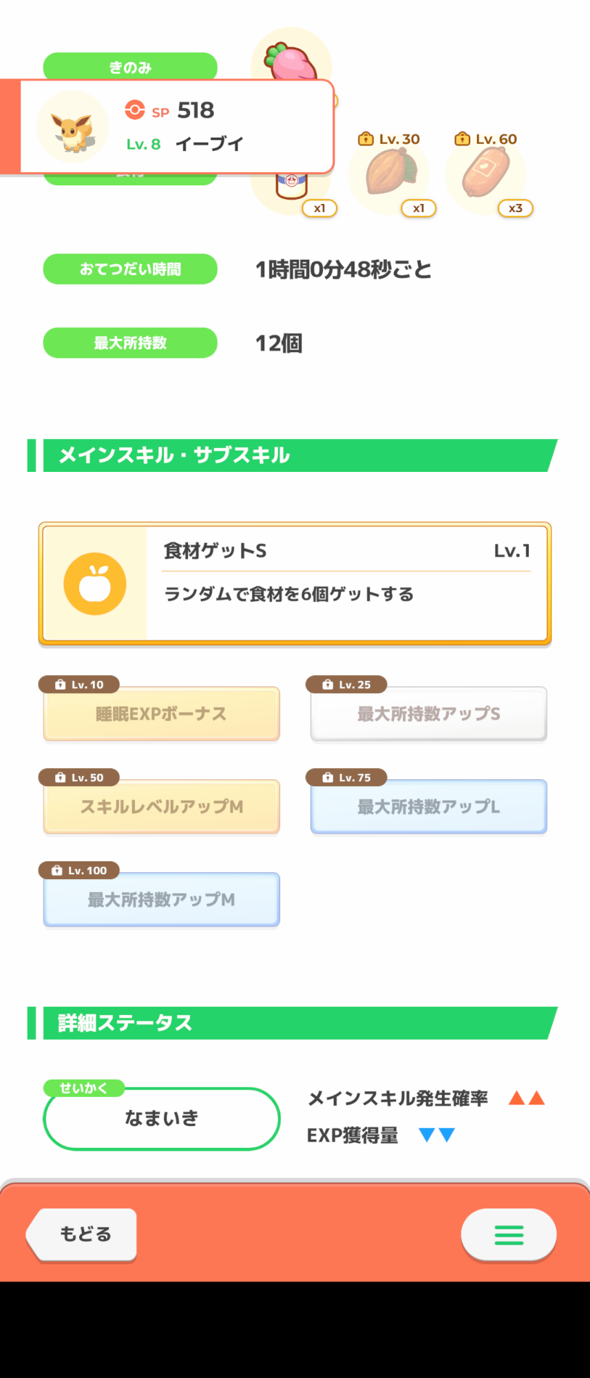 食材確率アップ!スキル確率アップ!食材確率アップ!所持数アップ!おてつだい!