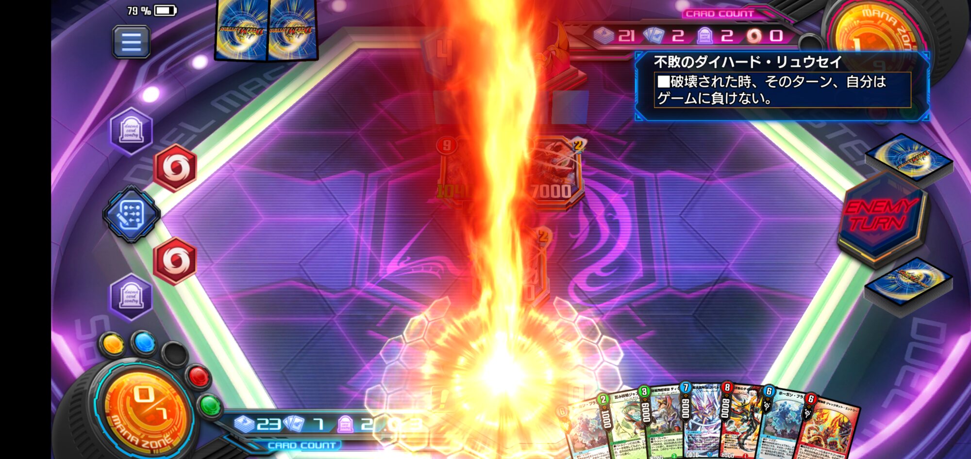 盤面制限はデッドマンニガのドラゴンデッキ使ってる時は別にそこまで気にならないと思ってたけど、手札のドラゴンを5コストで出し尽くしたらアホほど溜まったマナから龍解で手札補充してまた5コストで出し尽くす(マナブドラゴンも出すのでアブシュームに戻されたらまた手札補充のチャンス)、みたいなムーヴができそうでできないからちょっと気になるようになってきた