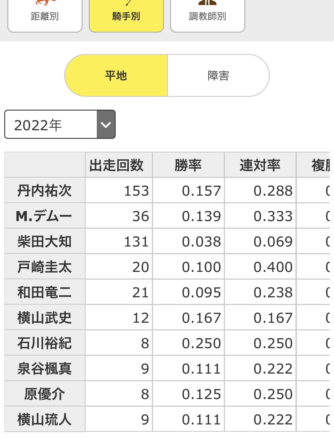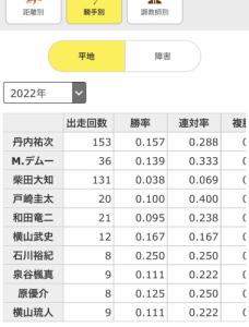 これ見てると若手の石川騎手、菅原騎手はちょっとずつ採用して次の丹内騎手枠になってくれないかな〜?してる感じかな